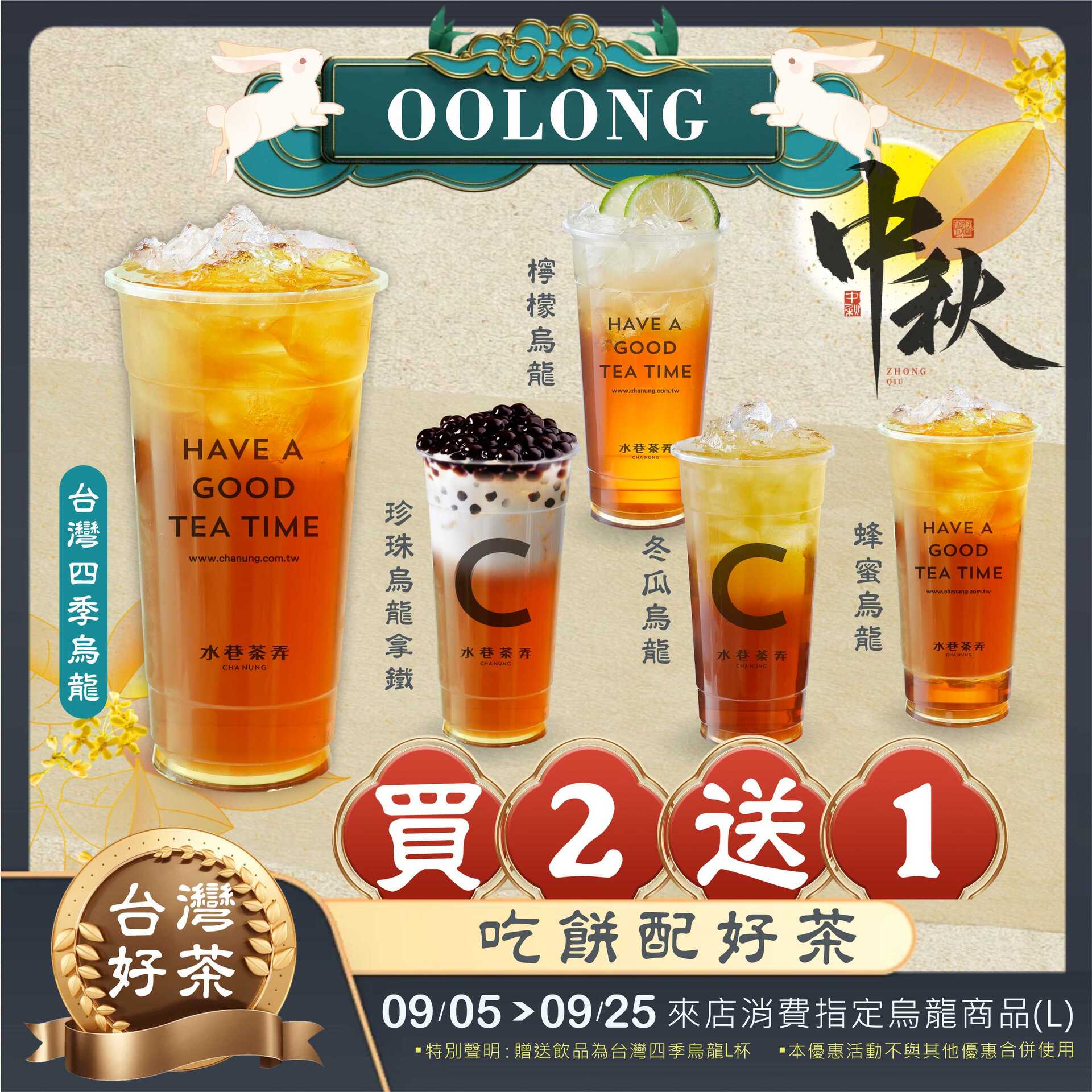 𝟮𝟬𝟮𝟰/𝟵/𝟱-𝟵/𝟮𝟱烏龍系列買𝟮送𝟭!台灣本產四季烏龍,中焙香氣順口回甘,是中秋吃餅烤肉解油膩的最佳選擇~~